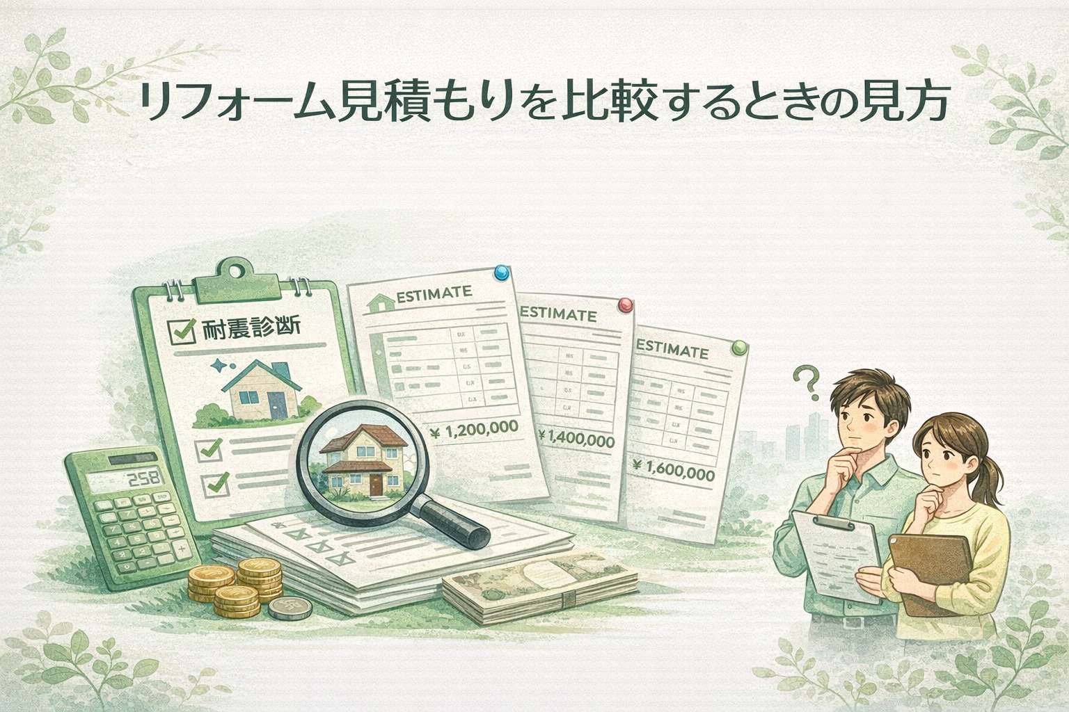 リフォームの見積もりは、工事範囲や材料、保証条件の違いで「同じ工事に見えて中身が別物」ということが起こりえます。金額だけを見ると判断を誤りやすいため、複数見積の比較検討が必要になってきます。ここでは、比較の順序と確認点を整理してみます。